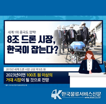 (한국물류서비스신문) 2015년 세계 드론 시장 규모 약 8조 원. 2023년이면 100조 원 이상의 거대 시장이 될 것으로 전망