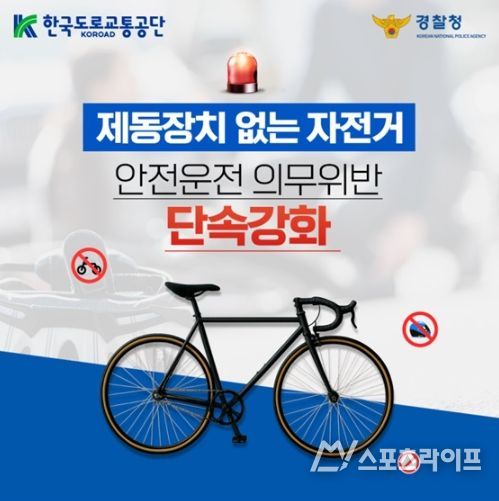 제동장치 없는 자전거를 타는 행위는 매우 위험한 행위로 가정과 학교에서 꼭 어린이와 청소년들에게 알려주세요!